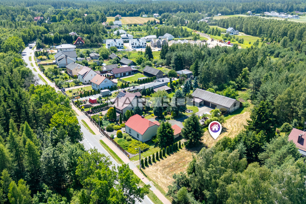 Na filmie z drona przedstawiona jest nieruchomość przed podziałem. Aktualnie wydzielone są dwie działki o powierzchniach 1322 m2 oraz 1031 m2.