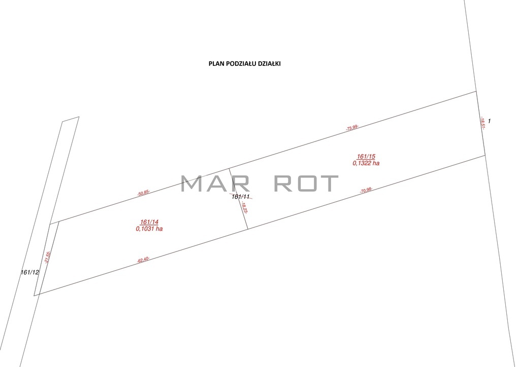 Sprzedawana działka posiada numer ewidencyjny po podziale 161/15.