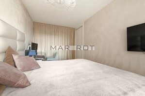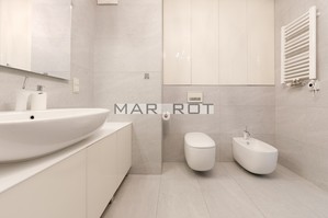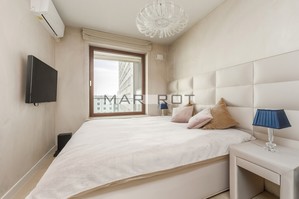 Apartament jest klimatyzowany (Gree) i wykończony został z najwyższej jakości materiałów na podłodze deska naturalna - dąb bielony, na ścianach tapeta z tkaniny alcantara (materiał miękki jak zamsz, odporny na zabrudzenia, łatwy w utrzymaniu, nie pochłaniający zapachów), na podłodze balkonu - deska tarasowa - modrzew syberyjski.