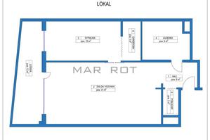 SALON (35m2) połączony, w pełni wyposażoną z KUCHNIĄ (meble wykonane na zamówienie z frontami lacobel, blat Corian wylewany w całości ze zlewem. Istnieje możliwość szlifowania blatu w celu odnowienia)