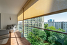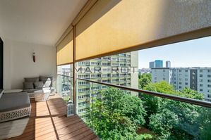 LOGGIA (12m2) z ekspozycją południowo-wschodnią, stanowiącą świetne miejsce do wypoczynku i na małe spotkania towarzyskie. Na podłodze deska tarasowa modrzew syberyjski impregnowany.