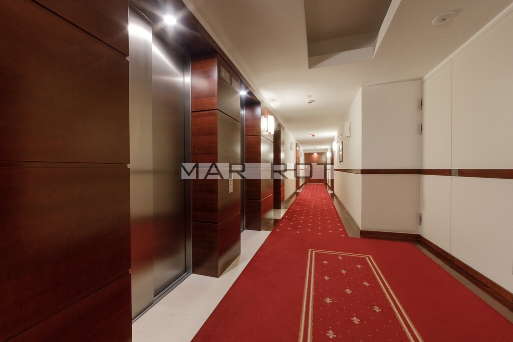 Budynek bardzo ładnie wykończony, z elewacją wykonaną z piakowca i granitu z kontrolą dostępu na każde piętro. Korytarze wyłożone wykładziną dywanową.