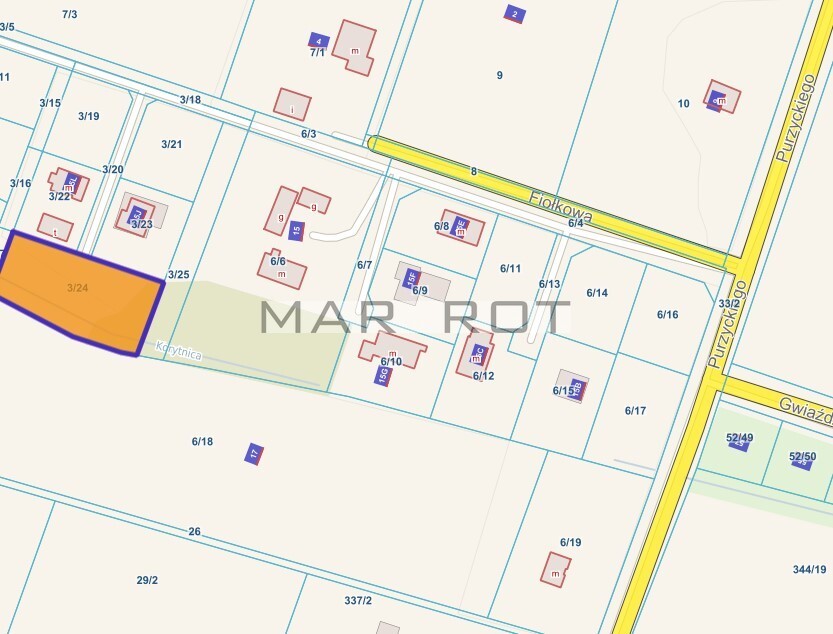 Wraz z działką (w podanej w ogłoszeniu cenie) sprzedawane są udziały w drodze dojazdowej - działki o numerach 6/3, 6/4, 3/18, 3/20. Działka nr 33/2 (ul. Purzyckiego) która przylega do działki 6/4 należy do gminy (KW działki gminnej WA1G/00055624/8)