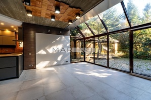 Il impressionne par son salon d'environ 6 mtres de haut, dot de baies vitres panoramiques offrant une vue sur le magnifique jardin verdoyant.