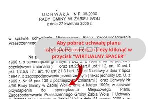 Aby pobrać uchwałę o miejscowym planie zagospodarowania należy kliknąć przycisk "SPACER WIRTUALNY" na głównej grafice w ogłoszeniu.