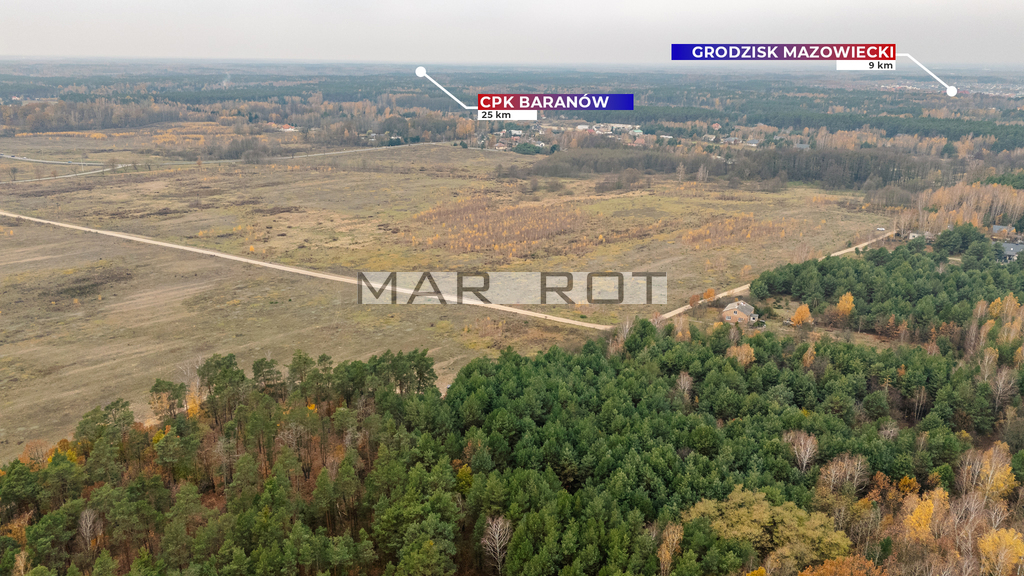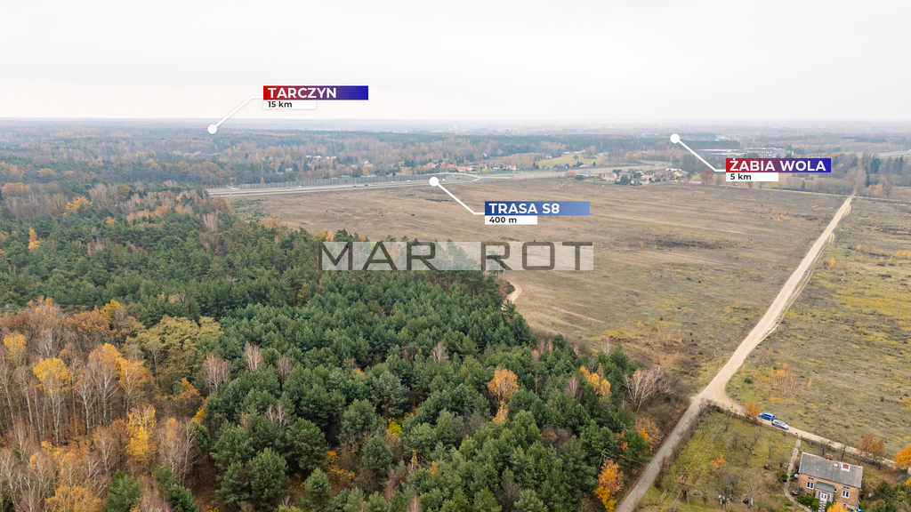 Świetna lokalizacja - tylko 400 metrów od trasy S8 bliskość węzła trasy S8 w Siestrzeniu 1 km. We wsi Siestrzeń znajduje się węzeł na drodze ekspresowej S8 umożliwiający szybki wjazd na trasę w kierunku Warszawy lub Katowic. Tylko 32 km od Centrum Warszawy. Działka znajduje się w odległości 400 metrów w linii prostej do trasy S8 (Aleja Katowicka). Od trasy oddzielona jest lasem o powierzchni 4 ha.