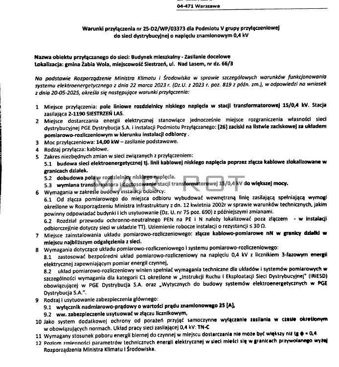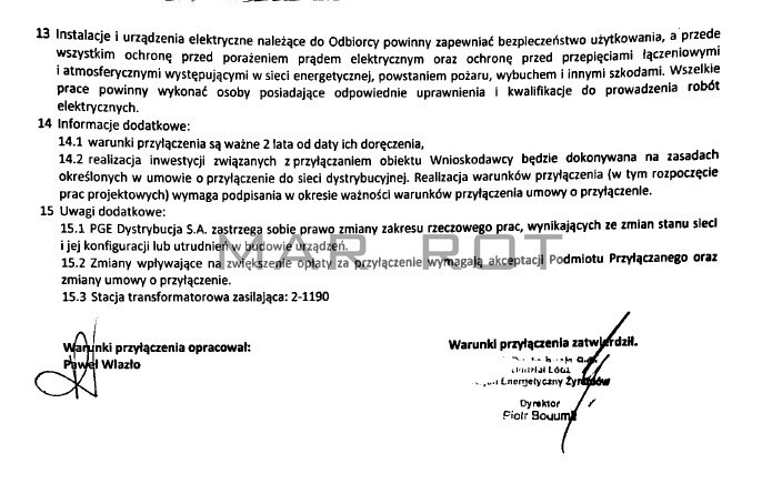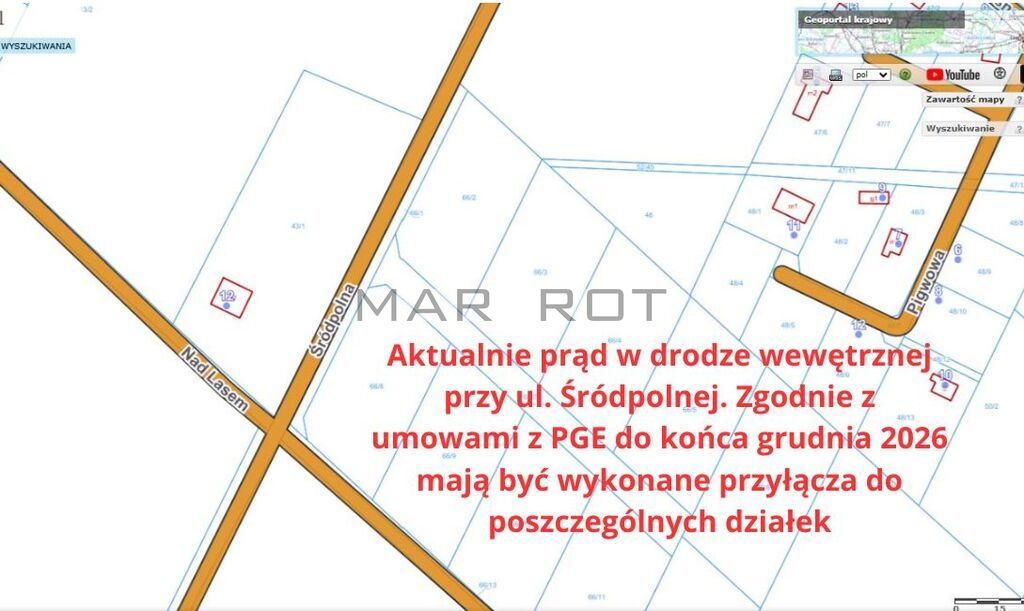 Cena działki zawiera podatek VAT, dzięki czemu kupując oszczędzasz 2% na podatku PCC. Na wszystkie działki właściciel podpisał umowy z operatorem energetycznym (PGE). Przyłączenie planowane jest na grudzień 2026r. W przygotowaniu jest wykonanie wodociągu w drodze wewnętrznej (bez przyłączy do poszczególnych działek). Termin budowy zaplanowany na czerwiec 2026r.