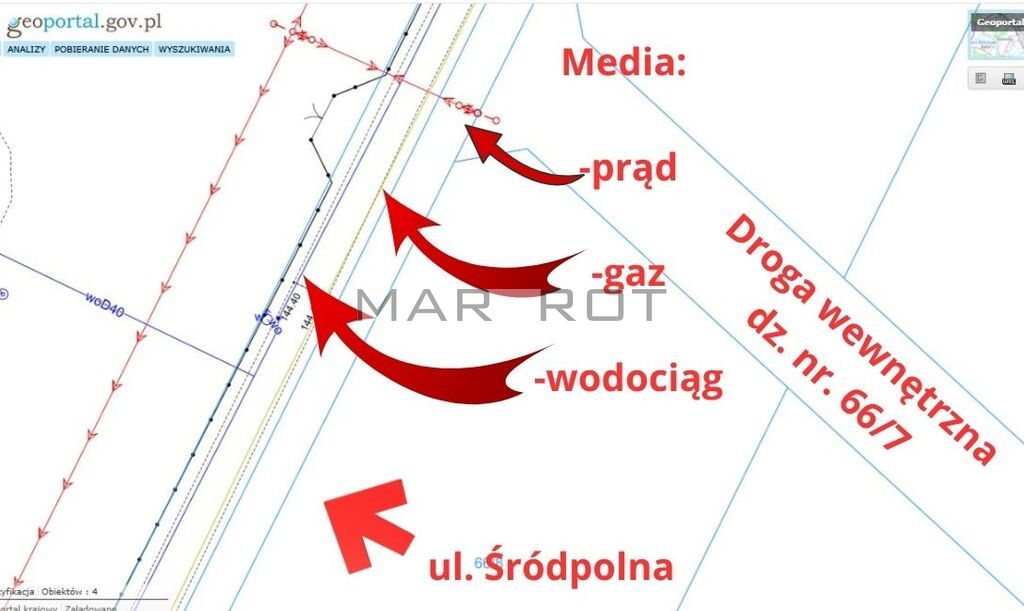 Aktualnie energia elektryczna, wodociąg, gaz znajdują się w drodze przy ulicy Śródpolnej. Do końca czerwca 2026r. planowane jest wykonanie wodociągu w drodze wewnętrznej. Przydomową oczyszczalnię ścieków lub szambo trzeba wybudować w własnym zakresie.