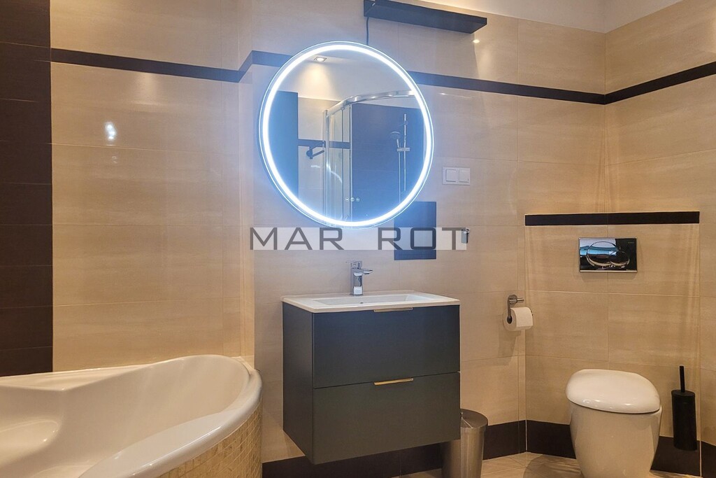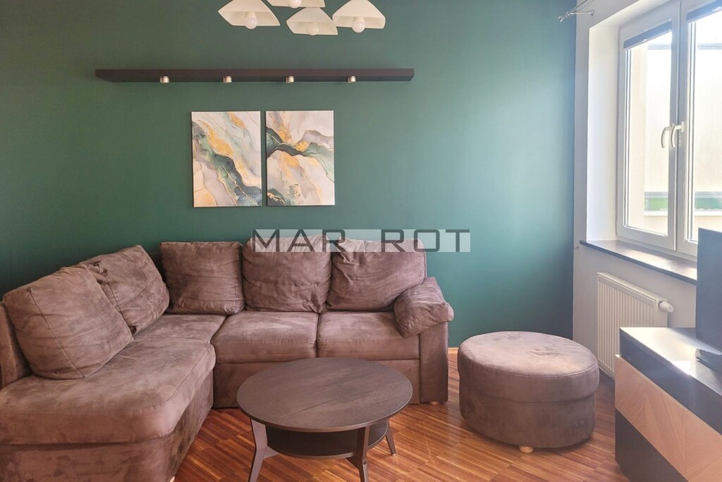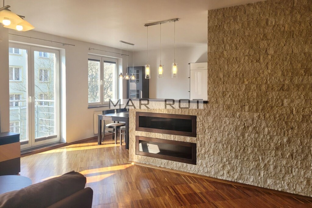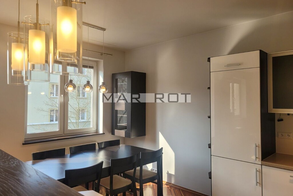 Mieszkanie jest w pełni wyposażone i umeblowane. Składa się z jasnego, przestronnego salonu połączonego z kuchnią, 2 sypialni, hallu oraz dużej łazienki z wanną i kabiną prysznicową. Z salonu jest wyjście na balkon o powierzchni ok. 7m2. Układ mieszkania jest funkcjonalny i dobrze przemyślany, dzięki czemu mieszkanie sprawdzi się zarówno dla pary jak i rodziny z dziećmi maksymalnie do 4 osób. Mile widziane są także małe zwierzęta.
