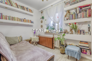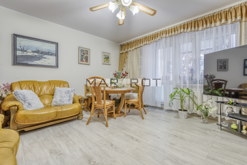 -jasny, ustawny salon z wyjściem na balkon z oknami od strony zachodniej.