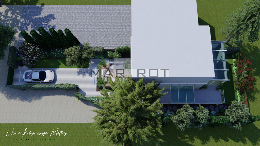 Możliwość zaparkowania dużego samochodu na terenie posesji.
