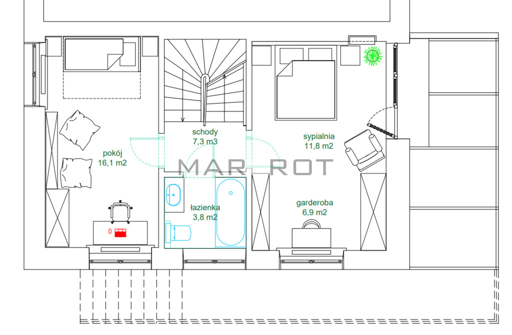 Dodatkowe informacje Okna wychodzą na wschód, południe i zachód, dzięki czemu dom jest bardzo dobrze doświetlony.