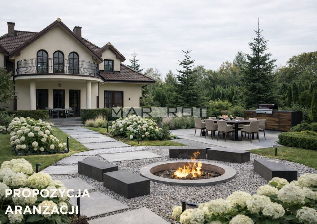 Nieruchomość usytuowana jest na dużej, starannie zagospodarowanej działce o powierzchni 3254 m2. Ogród zachwyca licznymi nasadzeniami i zapewnia prywatność oraz idealne warunki do wypoczynku. Na terenie posesji znajduje się również piwniczka z instalacjami przystosowanymi do obsługi planowanego stawu, co daje szerokie możliwości aranżacyjne.