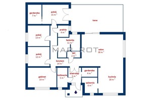Dom jest przestronny, w pełni wyposażony, częściowo umeblowany i gotowy do zamieszkania. Składa się z jasnego, dużego salonu połączonego z aneksem kuchennym i spiżarnią, 4 niezależnych pokoi, dużej łazienki wyposażonej zarówno w wannę jak i kabinę prysznicową, osobnego WC, 2 garderób, hallu i kotłowni.