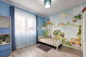 Wnętrze zostało zaprojektowane z dbałością o funkcjonalność i wygodę, idealnie sprawdzi się dla rodziny z dziećmi. Wysokość pomieszczeń wynosi 2,8 m, zapewniając poczucie przestrzeni i komfortu.