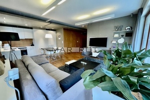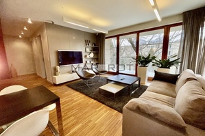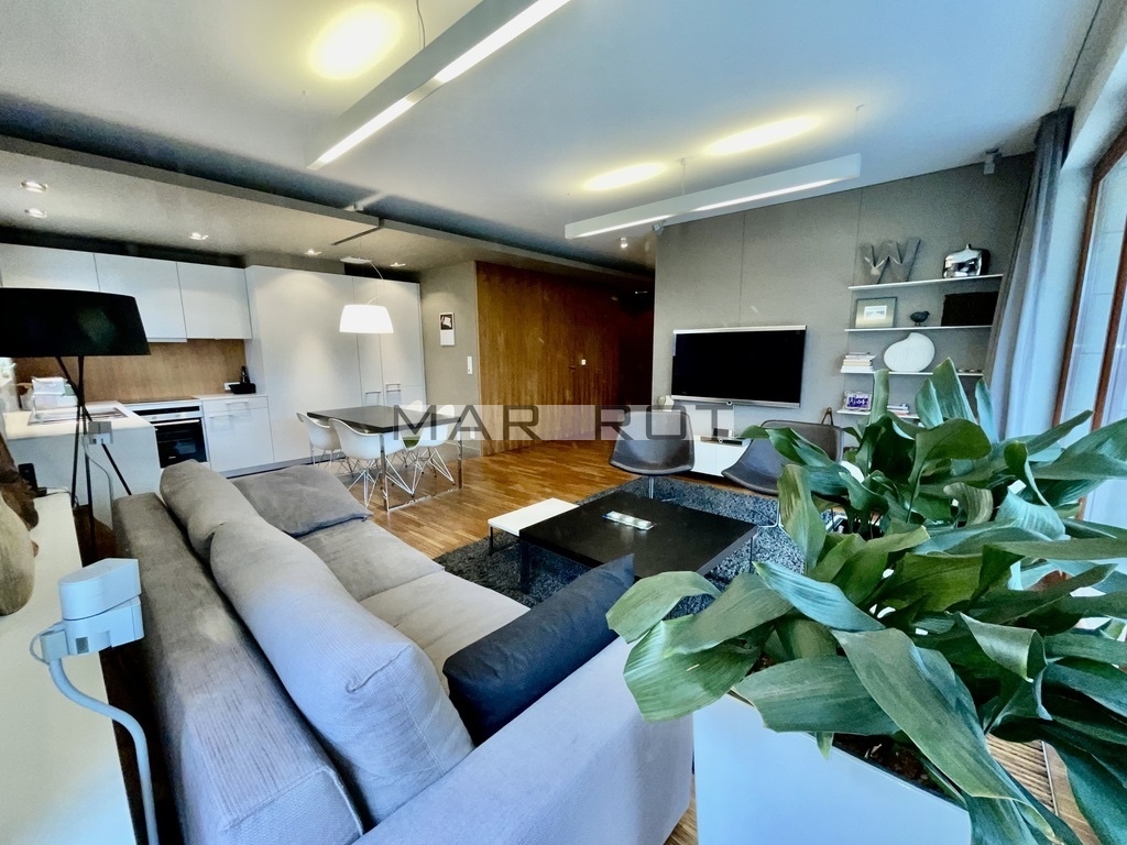 The apartment is fully furnished, spacious and well lit. A modern living room with access to a large terrace and a kitchen in the annex,
