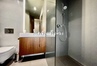 Sypialnia z łazienką z oknem oraz szafami które pomieszczą sporą część garderoby .