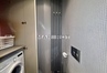 Hall z szafami w zabudowie oraz łazienka .