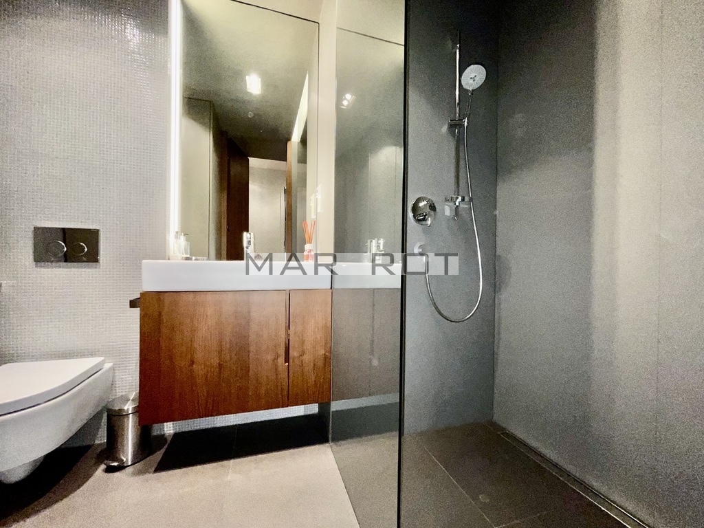 Ponadczasowa , nowoczesna bryła budynku wykończona bardzo eleganckimi elementami z pięknym lobby z recepcją .