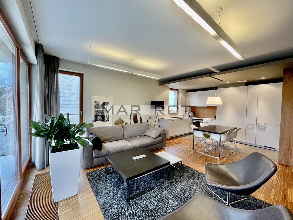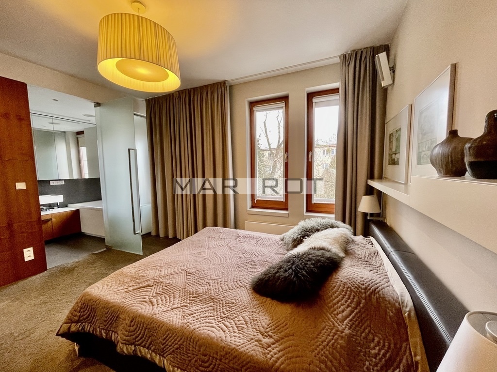 Je vous propose un appartement unique compos de 3 pices, une grande - belle terrasse donnant sur le Vieux Mokotów d'une superficie de 79,66 m2