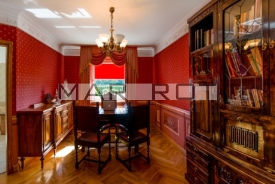 W domu jest również stylowy gabinet z rzeźbionymi meblami oddzielną łazienką i garderobą. Dla gości jest stylowa sypialnia z łazienką zdobiona pięknymi freskami. Stylowe oryginalne spiralne schody wiodą na pierwsze piętro.