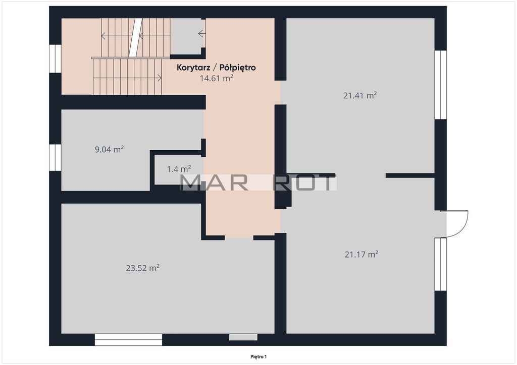 Dwa bardzo duże pokoje (21,41 m2 i 21,17 m2).