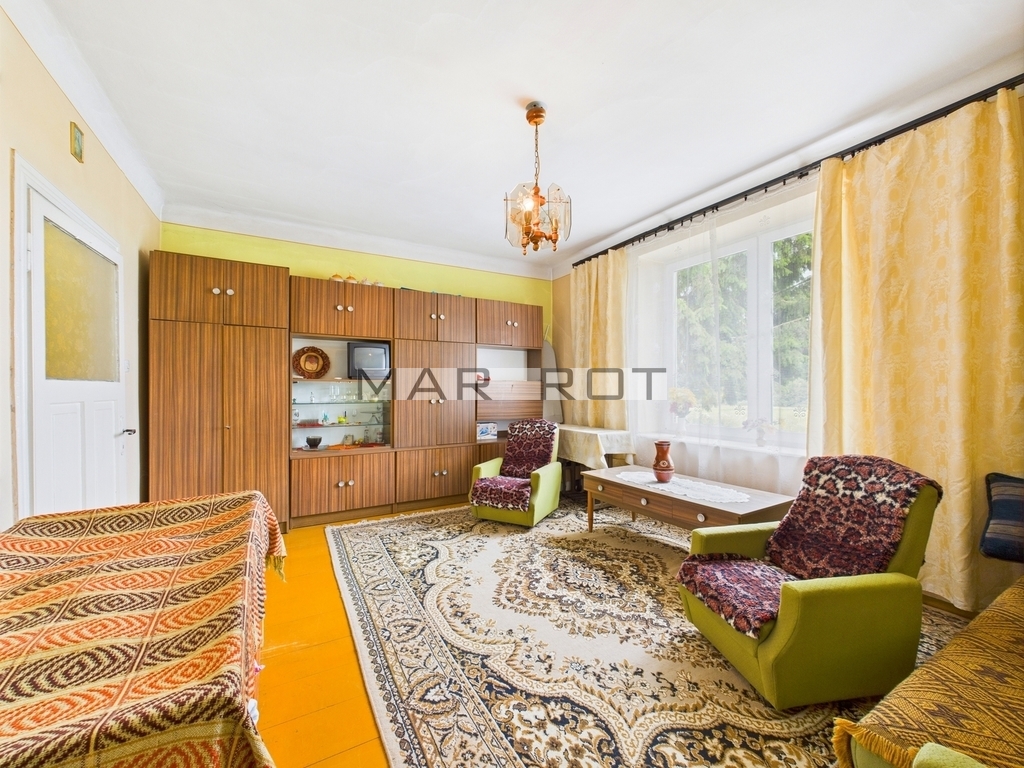 kalkulator Cena za mkw 4 445,54 PLN mkw Powierzchnia 101.00 m2 Pow. działki 9813.00 m2 Liczba pokoi 2 Stan bardzo dobry Rok budowy 1950 Droga dojazdowa asfaltowa Umeblowane TAK Garaż TAK Opis