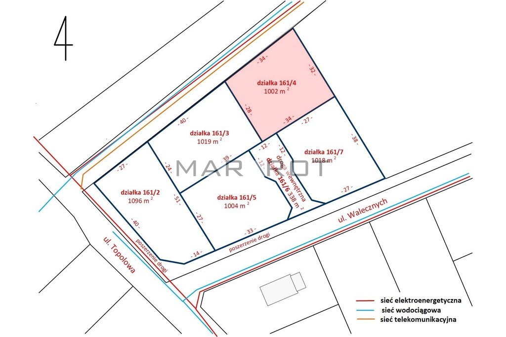 Linia wodociągowa oraz elektroenergetyczna biegną w drodze, 50m od działki.