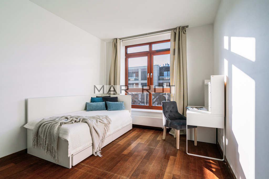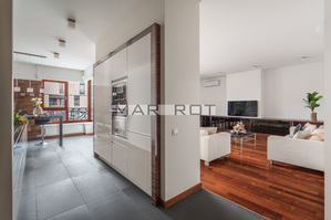 Całość została wykończona materiałami wysokiej jakości. Duże, drewniane okna oraz blisko 3 m wysokości mieszkania zapewniają doskonałe doświetlenie i poczucie przestrzeni.