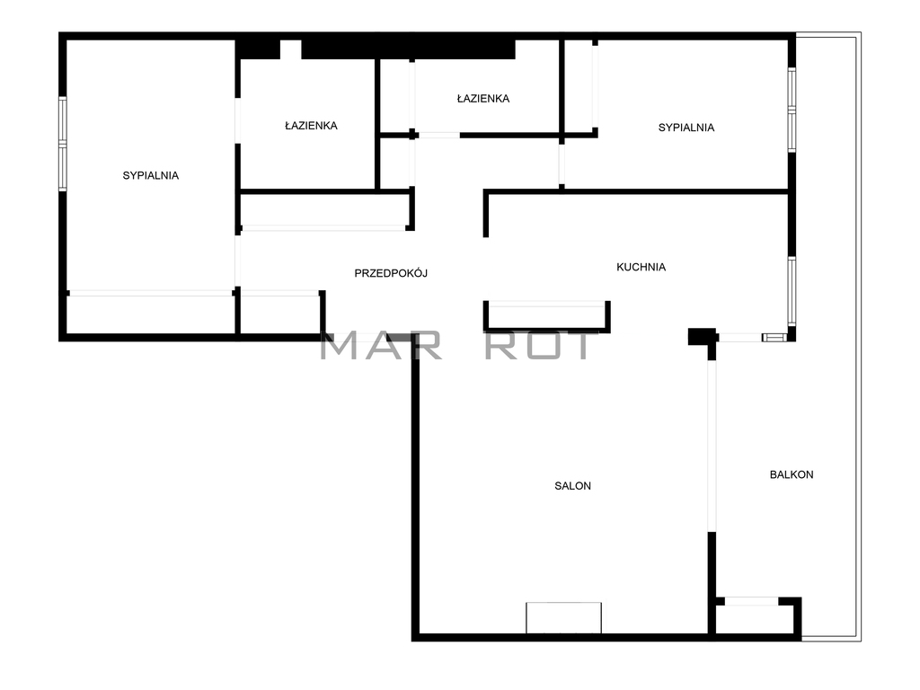 - 2 pełnowymiarowych łazienek (jedna z wanną, druga z prysznicem),