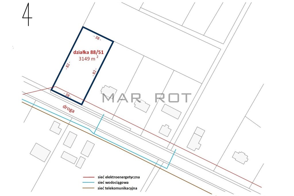 kalkulator Cena za mkw 53,99 PLN mkw Powierzchnia 3149.00 m2 Droga dojazdowa asfaltowa Media - prąd TAK Opis