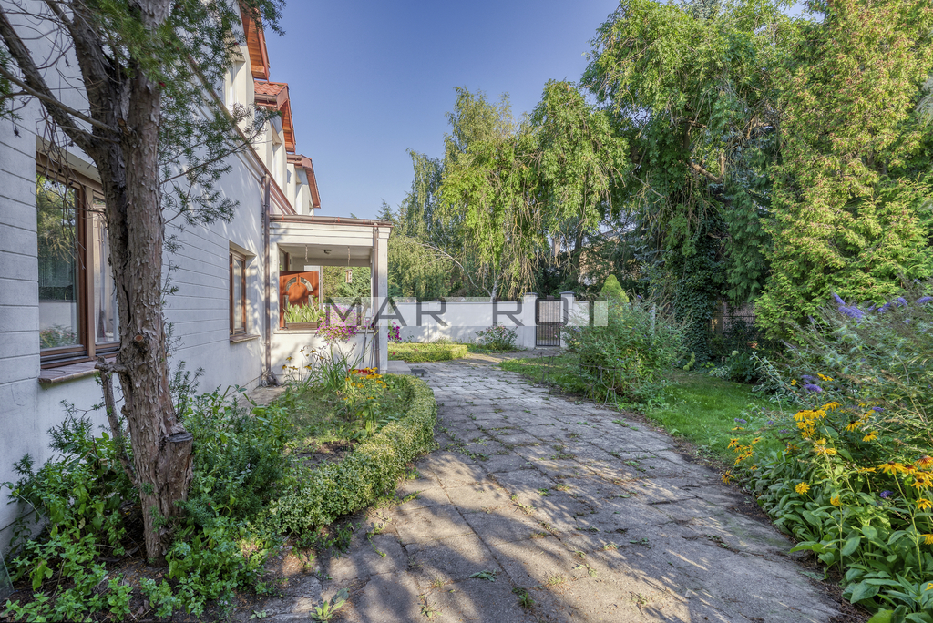 Na sprzedaż niezwykły, wolnostojący dom o powierzchni 344,66 m2, usytuowany na malowniczej działce 1207 m2 w prestiżowej, cichej i zielonej części Powsina, przy ul. Przekornej.