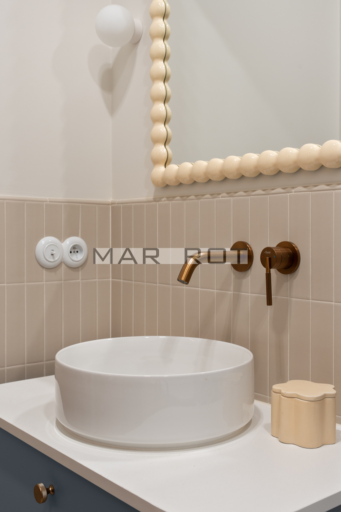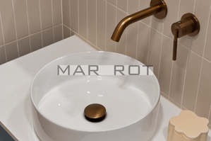 Łazienka z wanną, stylową armaturą w kolorze miedzi