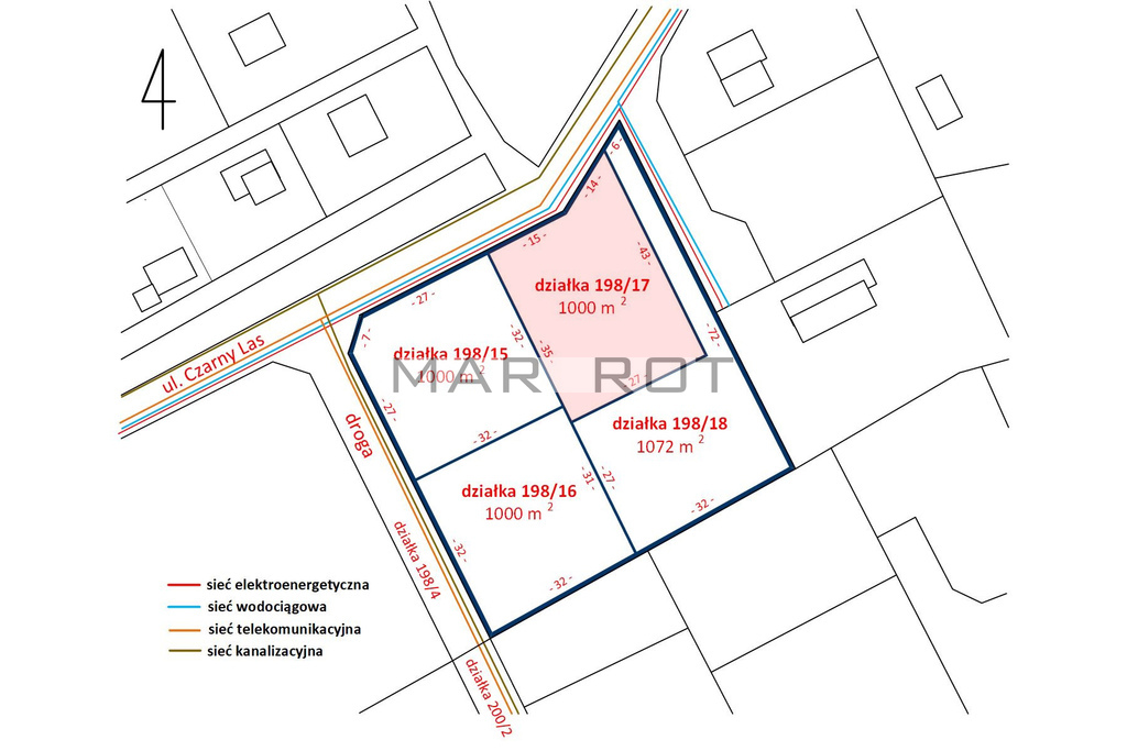Istnieje możliwość zakupu sąsiadujących działek o podobnej powierzchni powierzchni i wymiarach, bądź całego terenu 63 x 63 m = 4072m2