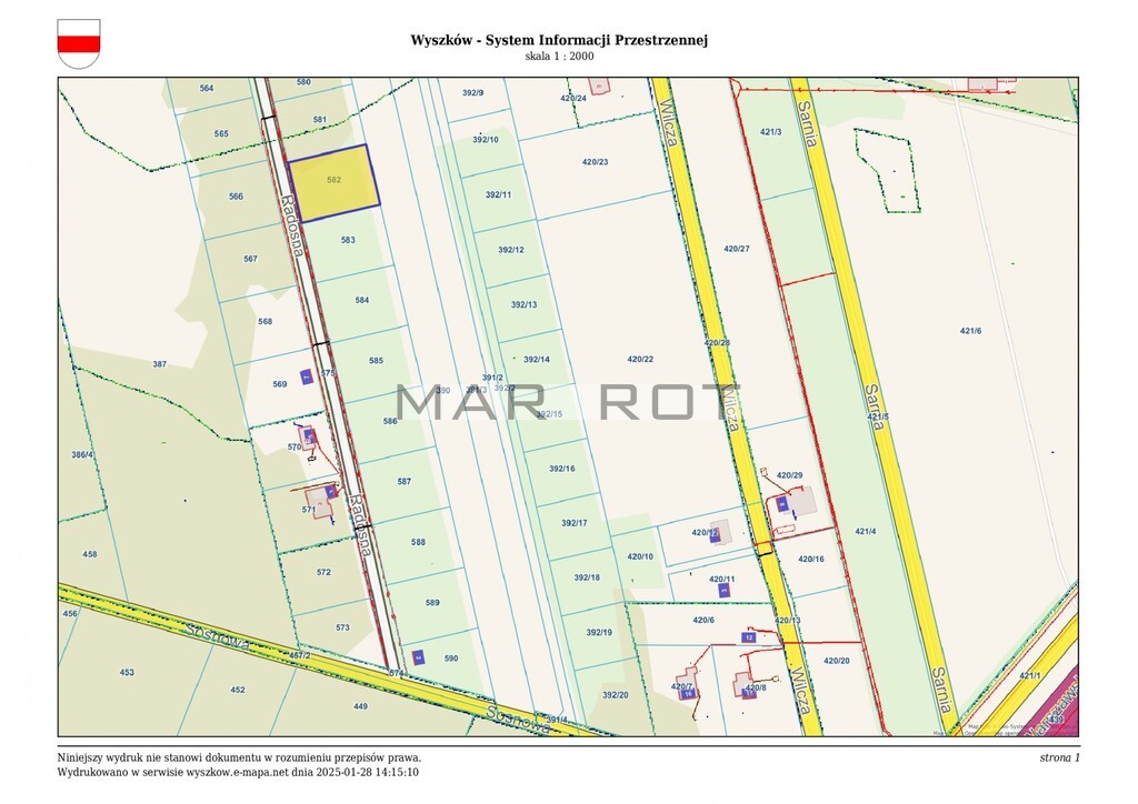 Na sprzedaż działka budowlana o numerze ewidencyjnym 582, Ślubów k. Wyszkowa. Możliwość zakupienie również działki o numerze 580, 589 z tego samego kompleksu.