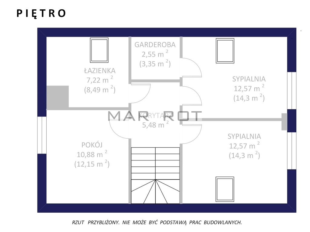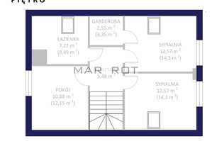 Piętro sypialnia ok. 12 m2 z wyjściem na taras ok. 26 m2