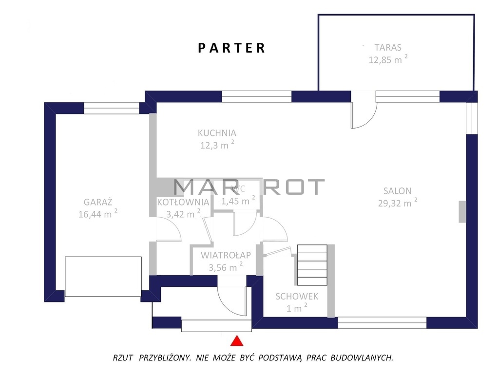 dom wykończony z pełnym umeblowaniem Rozkład pomieszczeń Parter salon z kominkiem i wyjściem na taras - ok. 30 m2