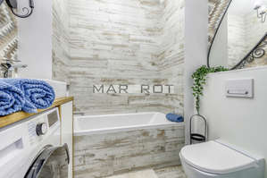 - łazienka z wanną połączona z toaletą