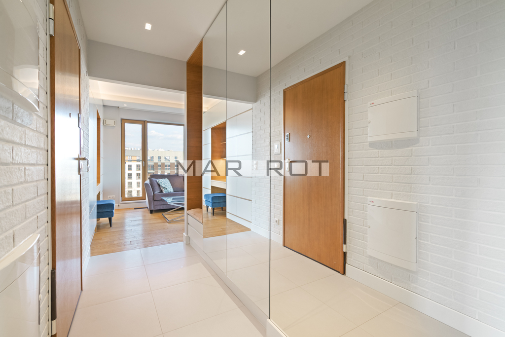 Oferuję do wynajęcia wyjątkowe mieszkanie zlokalizowane w apartamentowcu na 6. piętrze, z przepięknym widokiem na Wisłę oraz panoramę Warszawy.