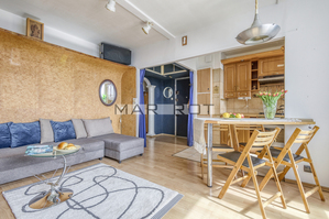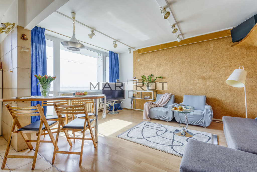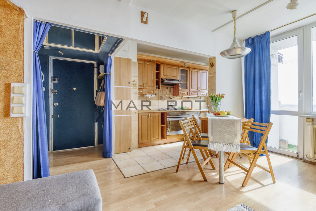 - Jasny salon z aneksem kuchennym - duże okno i ekspozycja południowa zapewniają świetne doświetlenie przez cały dzień