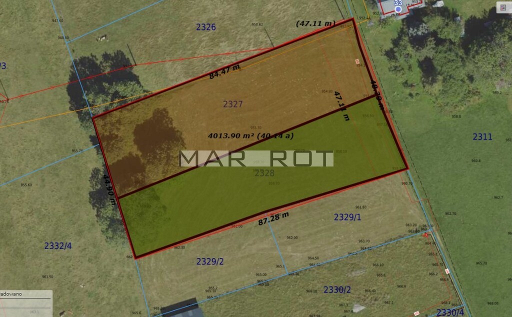 Na sprzedaż dwie działki budowlane o łącznej powierzchni 3906 m2 - Suche, gm. Poronin około 100 m od górnej stacji wyciągu HARENDA.