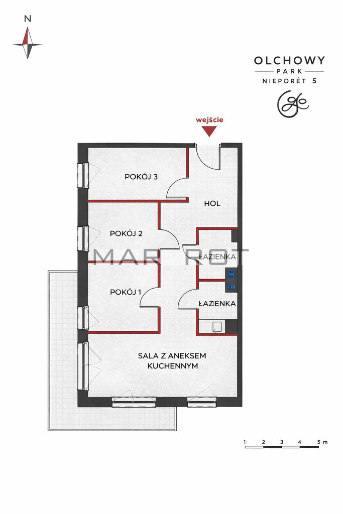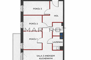4 pokoje (3 niezależne + salon z aneksem kuchennym)
