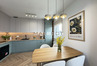 Salon z aneksem kuchennym to serce mieszkania - jasny, harmonijny, otwarty na światło i balkon.