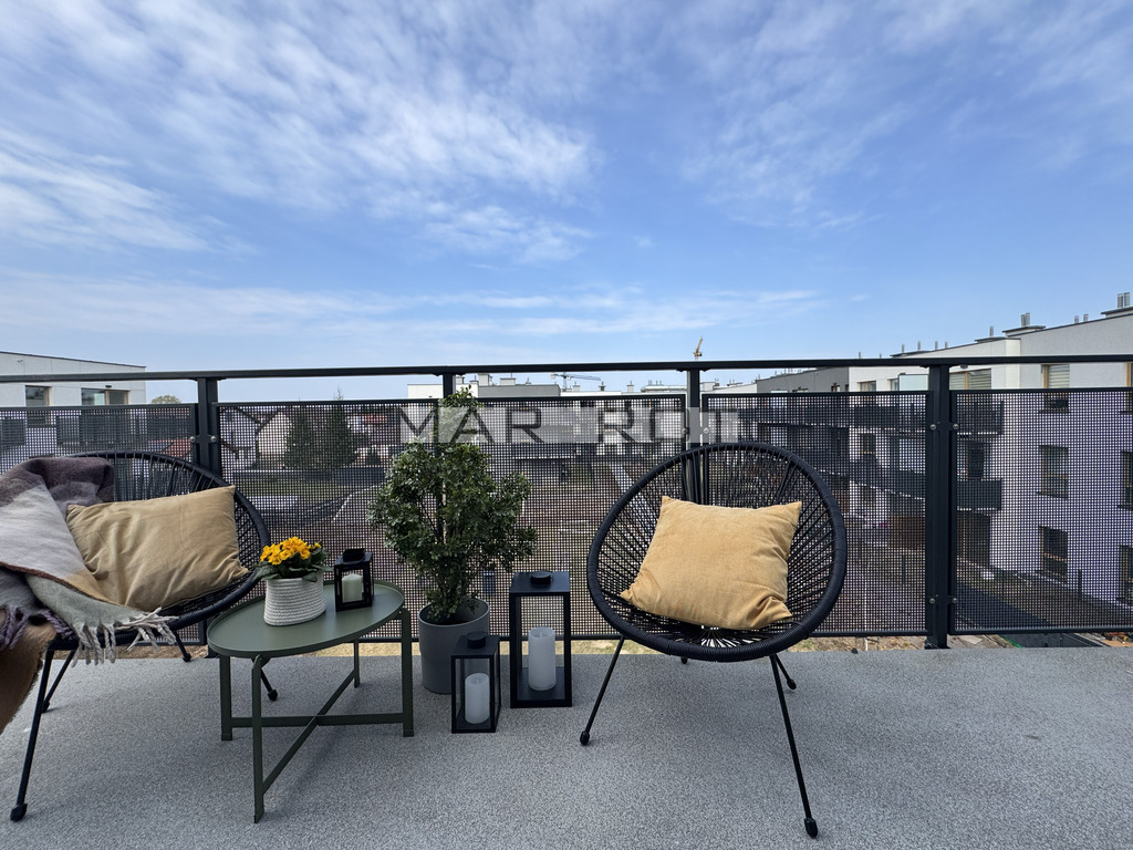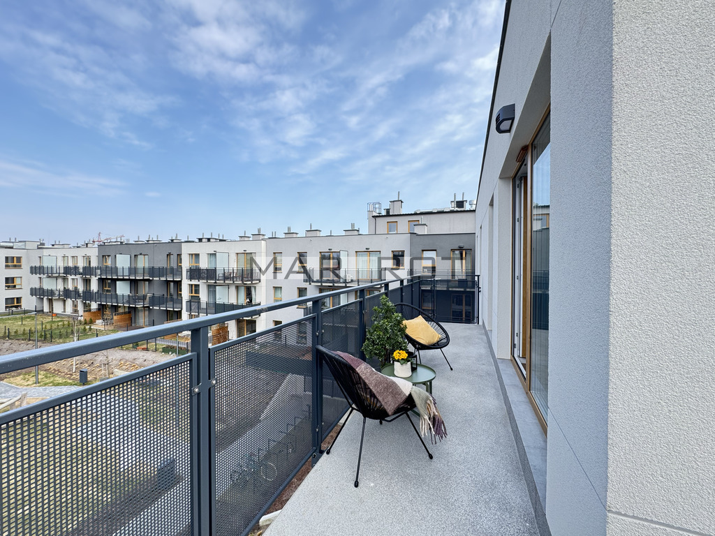 duży narożny balkon od spokojnej, zielonej strony