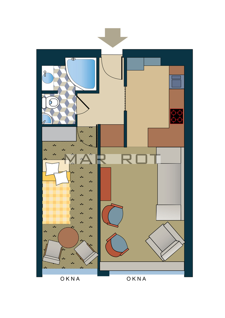 - funkcjonalny układ salon z aneksem + oddzielna sypialnia