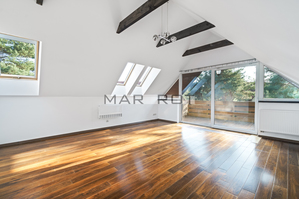 - spacious room with large windows and access to a loggia/balcony facing west with garden view