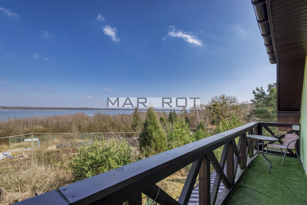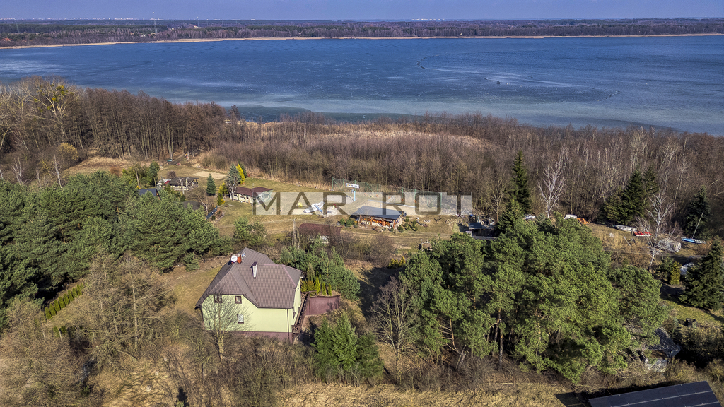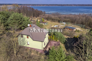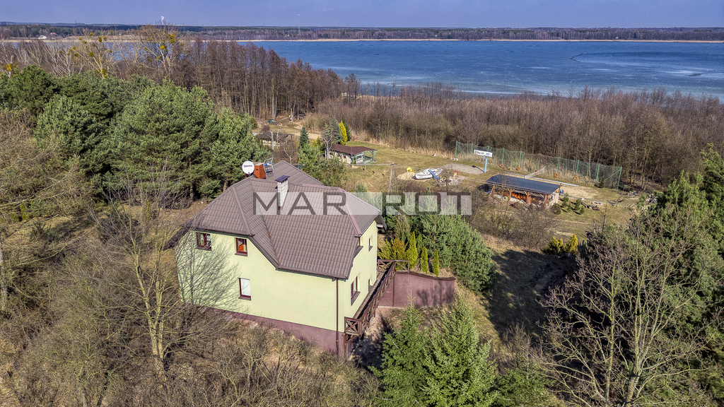 Nieruchomość jest usytuowana na przestronnej działce (pow.3100 m 2) na lekkiej skarpie w bardzo bliskiej odległości od linii brzegowej.