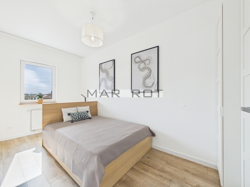 -Standard "Nówka" Nikt tu jeszcze nie mieszkał - będziesz pierwszą osobą, która skorzysta z nowej pralki, sprzętów AGD i wygodnego łóżka. Łóżko w sypialni 140 x 200 i biurko rozkładana kanapa w salonie.
