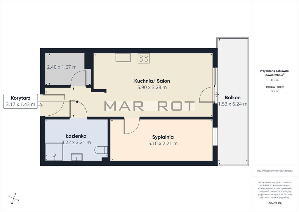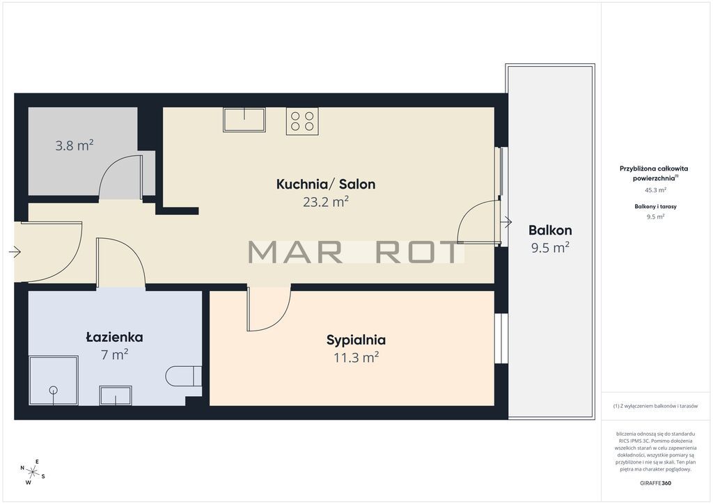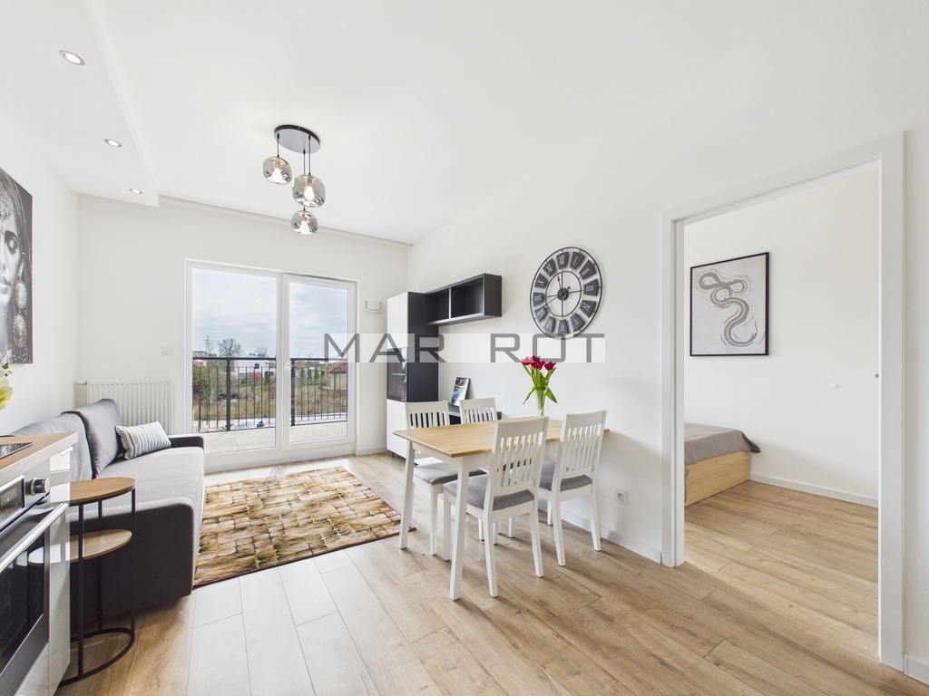 -Idealny układ 46 m2 inteligentnie podzielone na salon z aneksem, sypialnię oraz - co jest rzadkością małych przestrzeniach - osobną garderobę, dzięki której w mieszkaniu zawsze panuje porządek. Ekspozycja południowa.