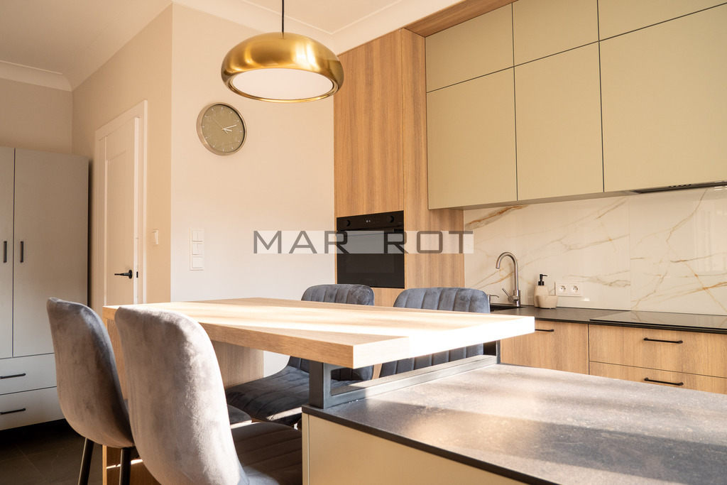 Mieszkanie składa się z salonu z w pełni wyposażonym aneksem kuchennym, komfortowej sypialni, łazienki z prysznicem i WC oraz p/pokoju. Wszystkie okna wychodzą na zachód.